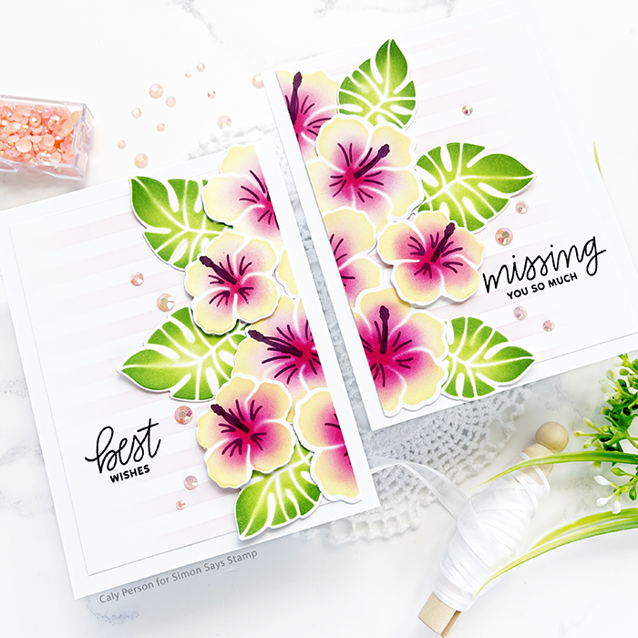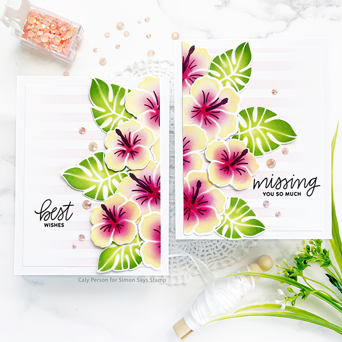 Welcome to a new product release blog hop for Pretty Pink Posh!!! Today is Day 1 of 3! I’m so excited to share today’s cards with you because I love how they turned out and it’s a two-fer (two for one)! I added color to these beautiful Hibiscus Flowers using stencils!