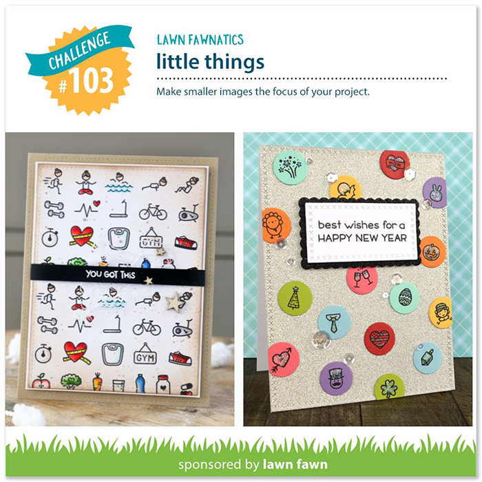 A new Lawn Fawnatics Challenge has begun! The theme this time around is Little Things – use smaller images as the focus of your card.