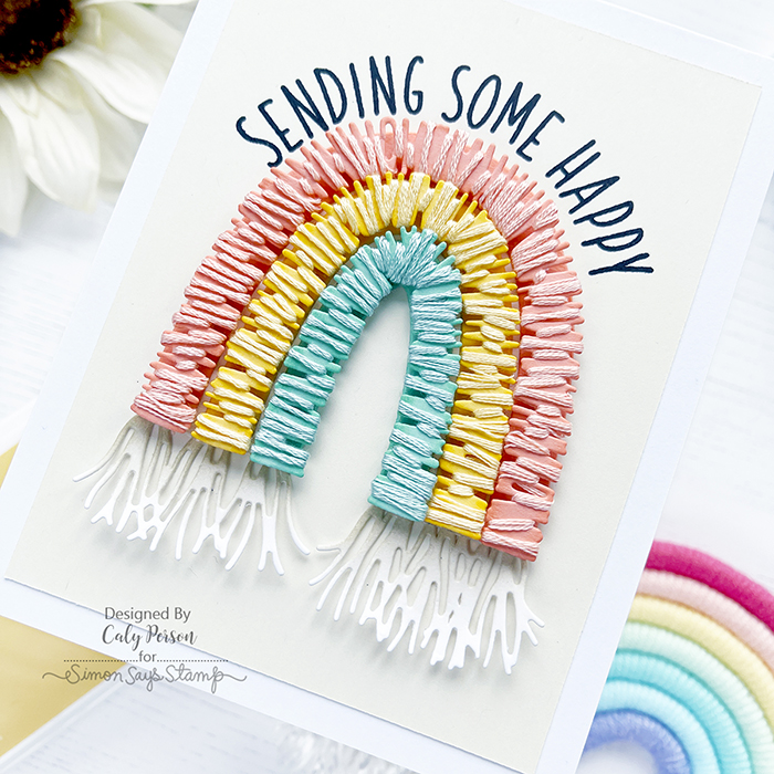 I’m excited to be sharing a rainbow card using the Concord & 9th Rainbow Stitches and Strings set! I have a video below for you, too! I love yarn/string wrapped rainbows and have made them – check out the video if you want to see what those look like! The dies from the Rainbow Stitches and Strings set mimic the look, but I couldn’t help but wrap it anyway.