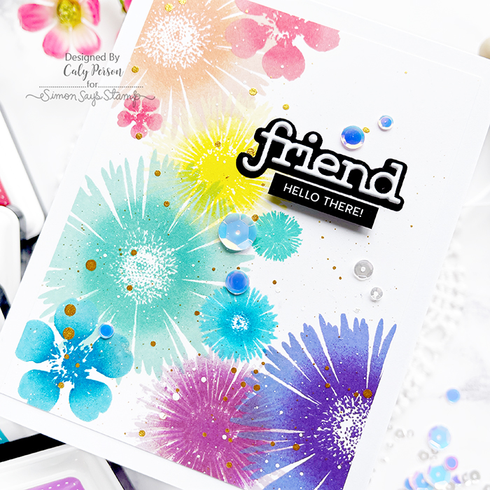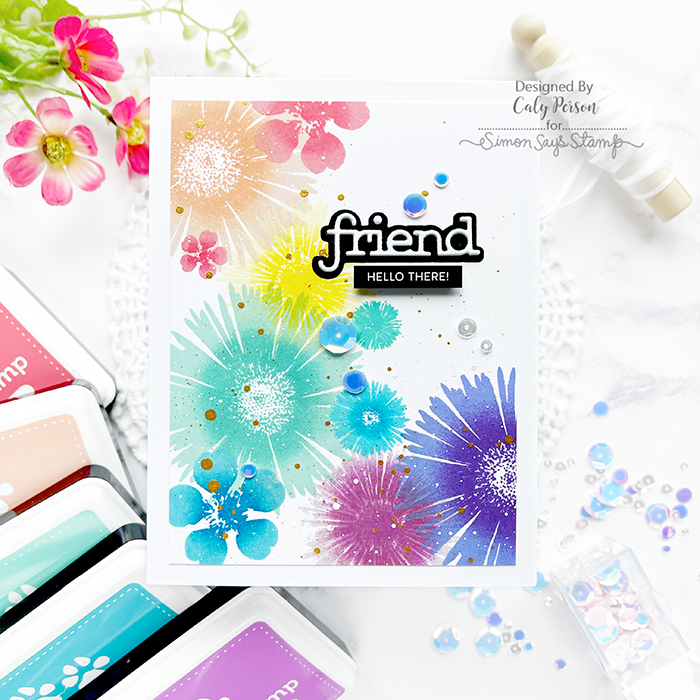 Simon Says Stamp Inks Used: Teeny Bikini, Hot Lips, Pale Blush Pink, Sunkist, Lemon Chiffon, Lemon Zing, Spring Rain, Scuba, Audrey Blue, Island Blue, Thistle, Hot Mama, Hydrangea, Deep Purple