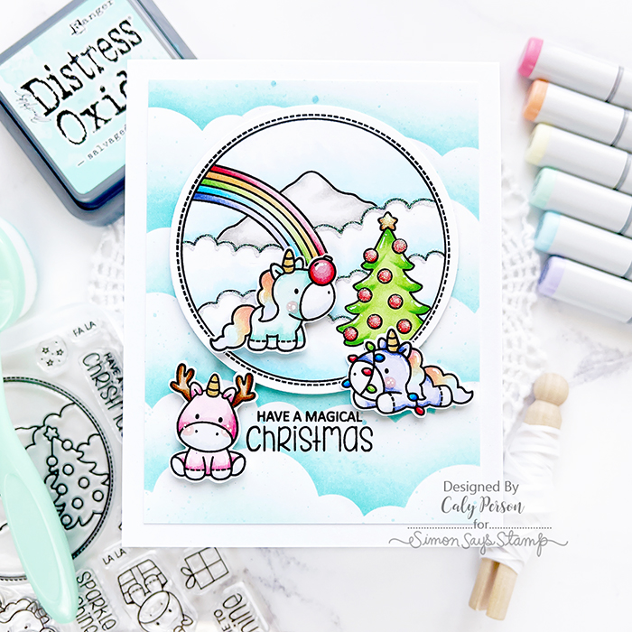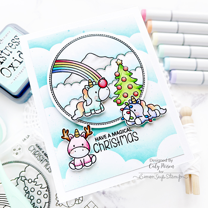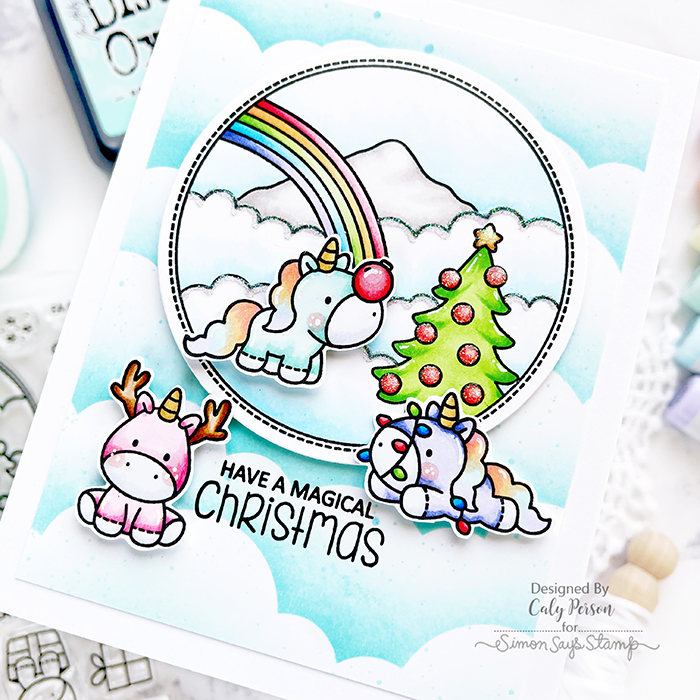 I stamped and colored my images with Copic markers. After coloring, I used a nested circle die to cut out the circular image, then fussy-cut the unicorns since I don’t have the dies.
