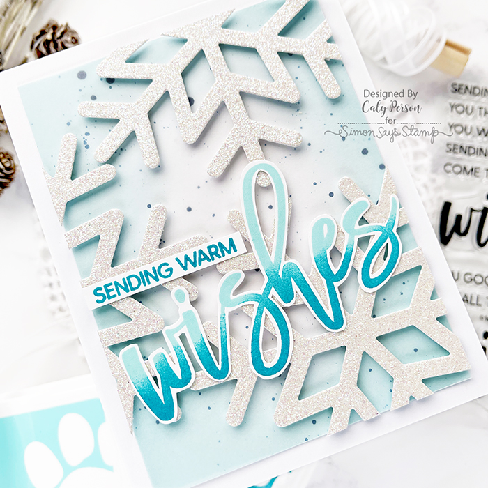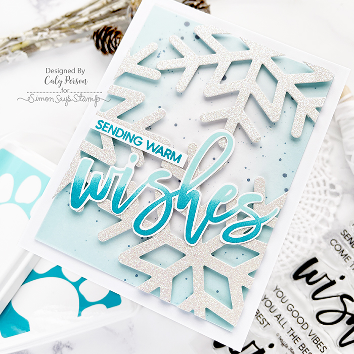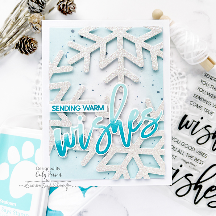 I wanted to use the Classic Snowflake so this was my opportunity to pair it with this STAMPtember Oversized Wishes set. I die-cut the Classic Snowflake using white glitter cardstock and layered it over an ink-blended panel that I ink-blended using Seafoam ink.