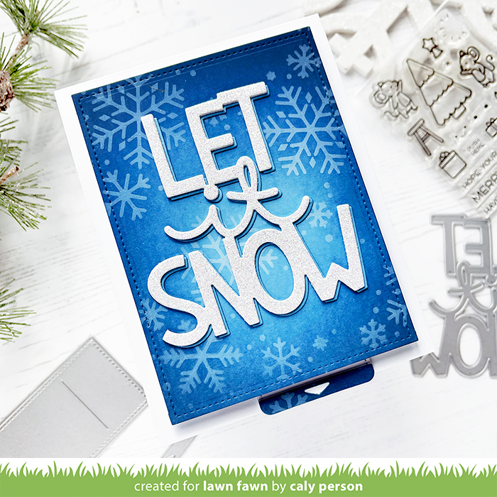 The Giant Let It Snow die is stacked with Pixie Dust (white) Glitter Cardstock, a layer of white, and an offset layer of Moonstone cardstock.