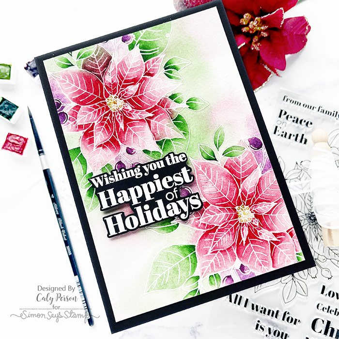Simon Says Stamp has released a few special products for the holidays. I’ll be sharing a few more over the next few days so be sure to check back for more inspiration. Today’s card uses the Winter Flower set. This 6″ x 8″ stamp set features a beautiful poinsettia bouquet.