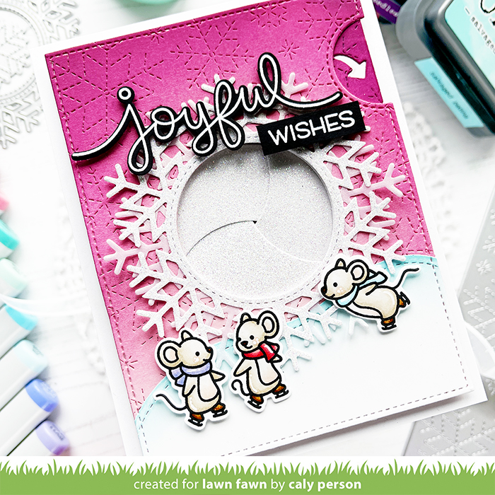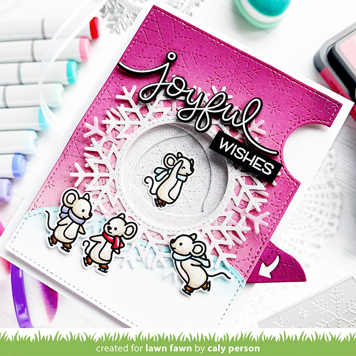 Today’s card features the Magic Iris die, as well as the Magic Iris Add-On and new Magic Iris Snowflake Add-On. I love that their interactive dies continue to be more versatile with their add-on products. I used the Mice on Ice set today to create a winter scene.