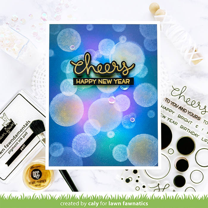 I was inspired by the lights in these photos and wanted to do the bokeh effect – something I haven’t done in a long time! Lawn Fawn’s Let’s Bokeh stamp set is the perfect set for this technique!