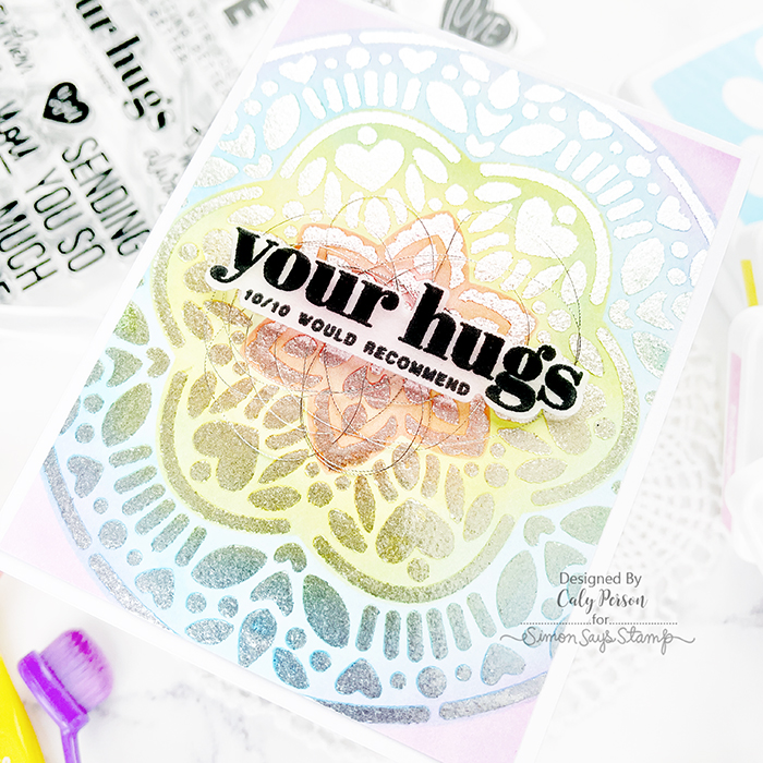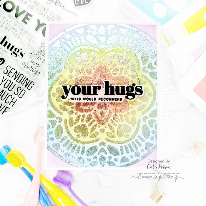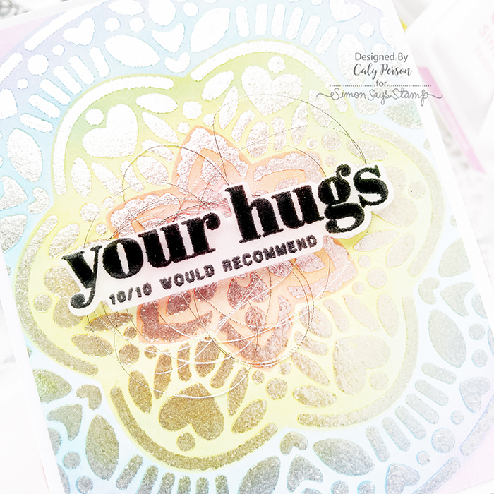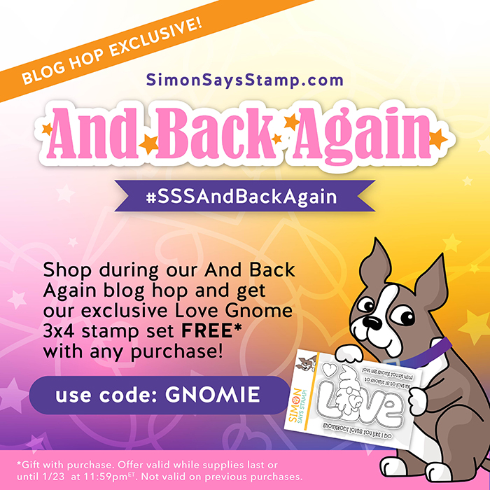 Welcome to the Simon Says Stamp And Back Again Blog Hop! This is day 1 of a 2 day celebration so be sure to check back tomorrow for more inspiration! I hope you’ll find lots of inspiration during your stops today! If you want to be see even more inspiration, be sure to check out the And Back Again Gallery! My card today features the Layered Heart Mandala Stencils and the new XL Love Greetings stamp set.