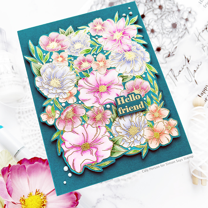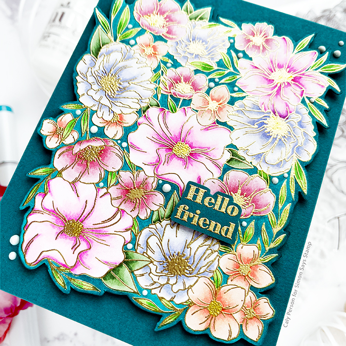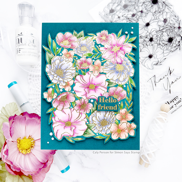 I embossed my sentiment in gold over the same Peacock Teal cardstock and layered that over my image as well. To finish today’s card, I also added some embellishments using Nuvo Simply White Crystal Drops. I love the stark white against a colorful card like this and hope you like it too! Be sure to check out the full release. You can find it at Simon Says Stamp! Thanks so much for stopping by today!