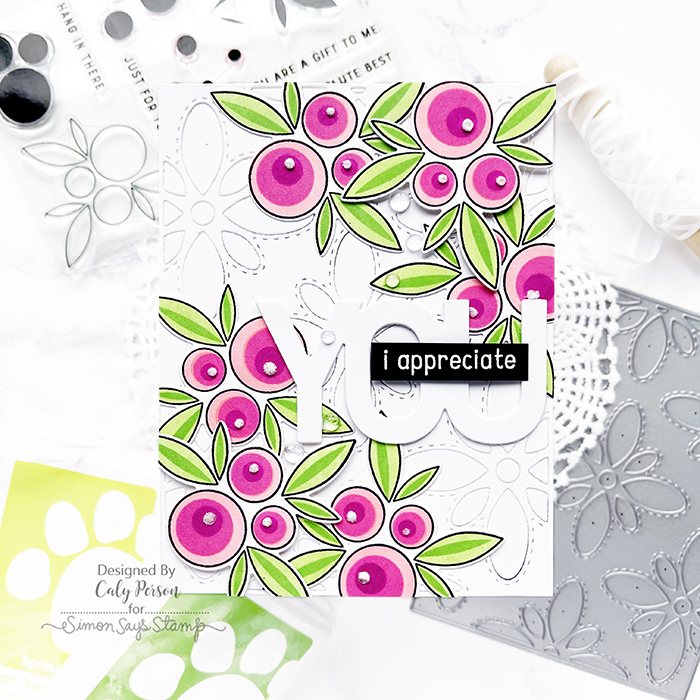 After trimming off the excess, I die-cut the You sentiment and embossed the stamped i appreciate and attached them to my card. To finish, I embellished my card with some Unicorn Dust glitter at the centers of the poppies and added a few clear dew drops in various areas. I hope you like it! Thanks so much for stopping by today!
