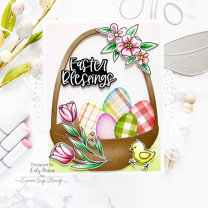 I used stamped images from the Easter Joy set to color with Copic markers and to decorate my basket.