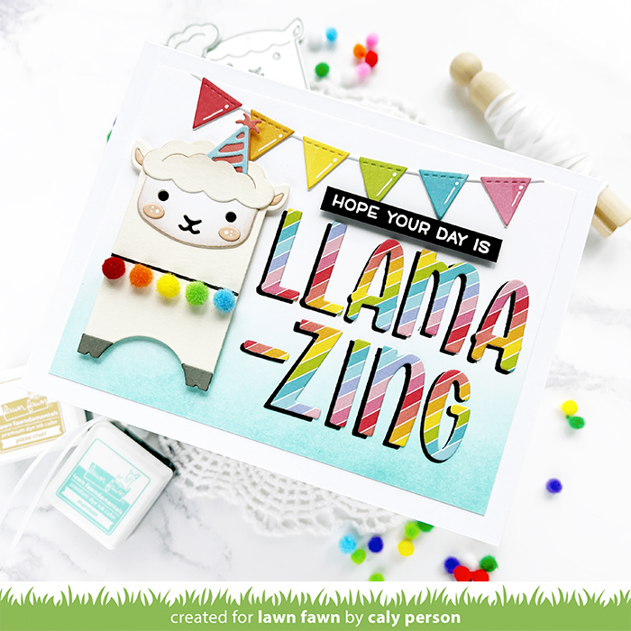 It’s day three of the Lawn Fawn April Inspiration Week. Today’s card features the Tiny Gift Box Goat and Llama Add-On die. I used the die to piece together a llama for a fun and festive card.