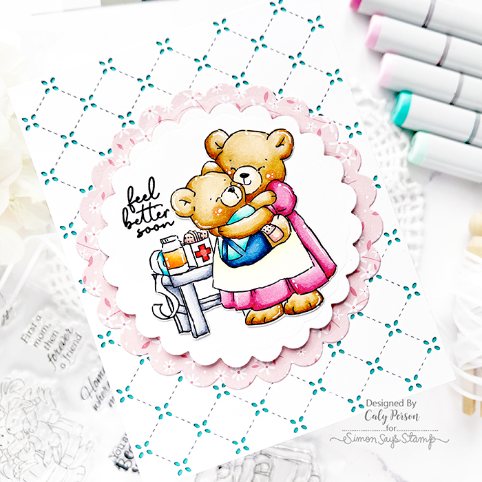 I used the sweet bear image from the set for my card today. I stamped and colored them with Copic markers before die-cutting the image. I love how close to the stamped line the die-cutting is!