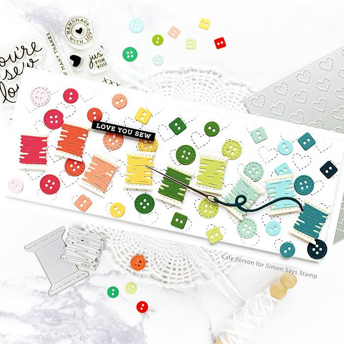 I die-cut a rainbow of buttons and thread spools for my card today. I didn’t intend to cover the background with buttons, but ended up cutting so many, I wanted to use them!