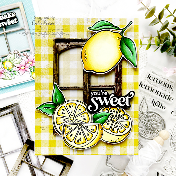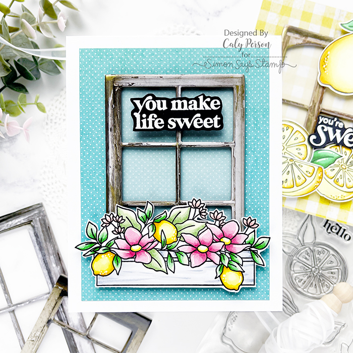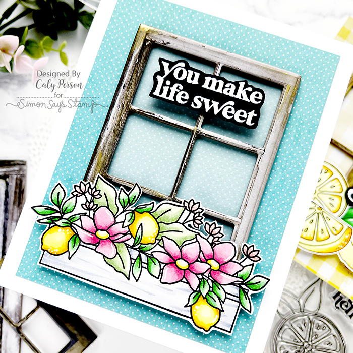 I used a piece of yellow gingham paper from the kit using Simple Stories’ Simple Vintage Lemon Twist Paper. Both windows have a layer of vellum behind them to soften the color in the window.