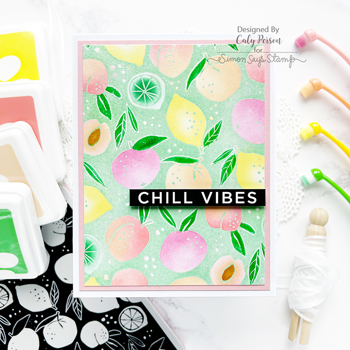 I’m back to share more inspiration from the Simon Says Stamp Let’s Chill Release. Today’s card uses the Fresh Fruit red rubber background cling stamp. Sometimes, it feels limiting to use a background cling but I’m sharing how you can make it colorful with my card.