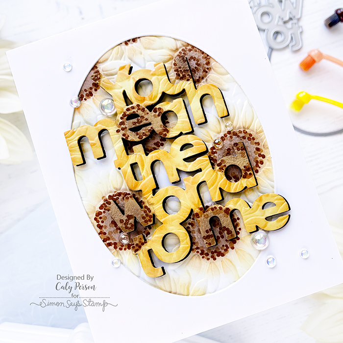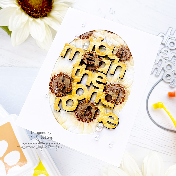The Sunflower Field embossing folder is new from the Let’s Chill release. It comes with a die for a single sunflower and you can use it also for the spotlight technique, but I decided to use a large sentiment die instead. To create a spotlight, we first need to emboss our image and add color. You can choose to color a single image to “spotlight” that image, or use more color to “spotlight” a certain area on your card.