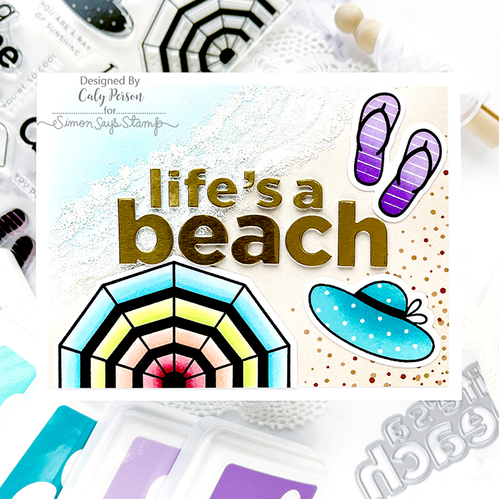 I have a summer card to share today using products from the Simon Says Stamp Let’s Chill Release. Cathy Zielske’s designs are always clean, sleek, and so much fun! I used the Beachy Keen set and Life’s a Beach dies to make my card.