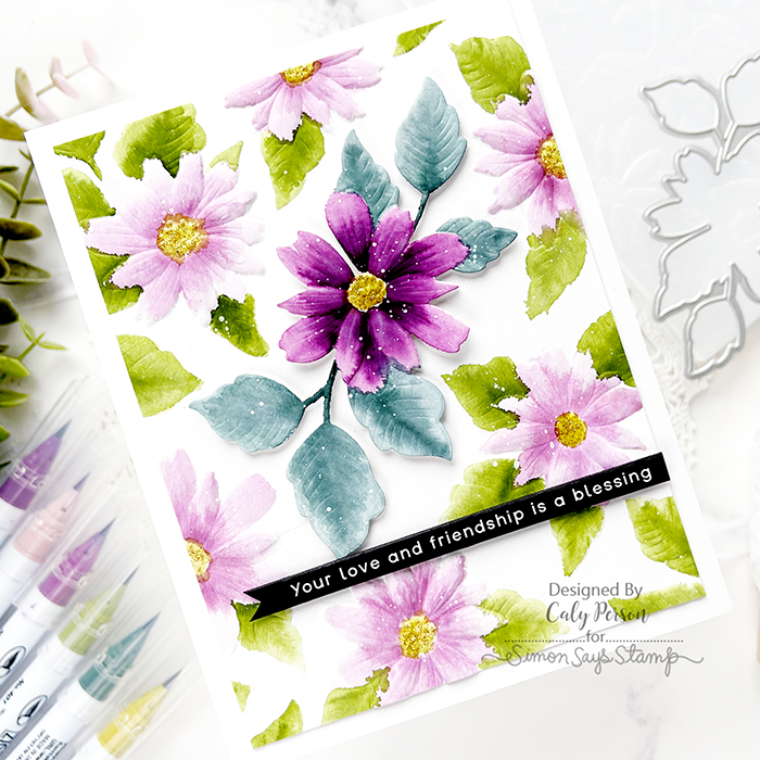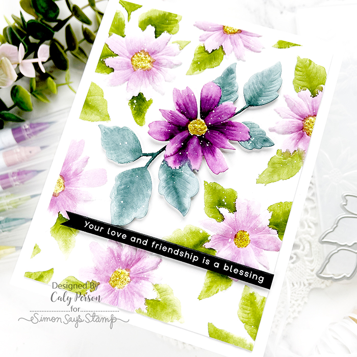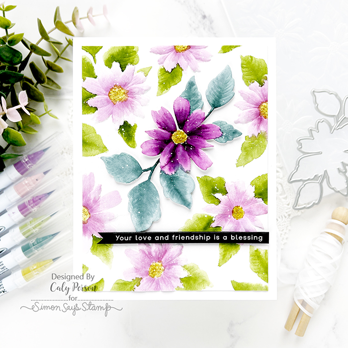 The Terrace Floral Embossing Folder comes with a coordinating die for the center cluster. So I die-cut the flower first, then embossed it in the embossing folder. I also embossed a full panel to watercolor them with the Zig Clean Color Real Brush Markers. I used Bristol Smooth cardstock as it is a friendly-paper for liquid watercolor.