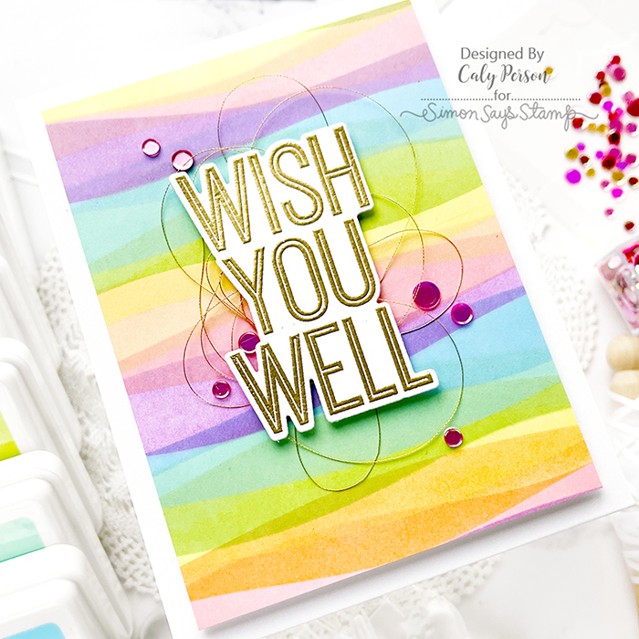 I created a fun background for today’s card using the Horizon Lines Stencil from the Simon Says Stamp Dream Big release. The stencil comes with 5 different horizons (hills, clouds, winter pine, cityscape, and park). My card today uses just the hills and I did some easy masking to create color waves all the way down a panel.
