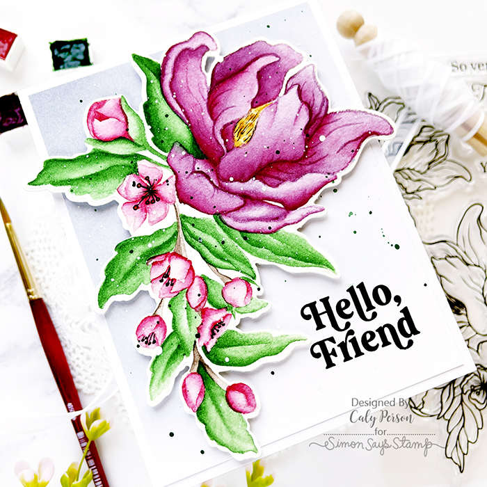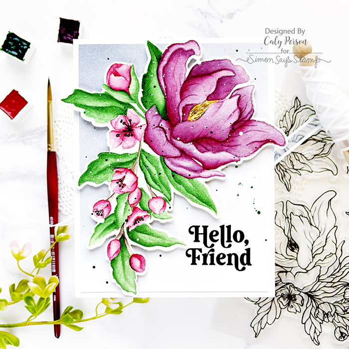 It’s been a while since I did no-line watercoloring. I felt the Magnolia Apple Blossom set from the Simon Says Stamp Dream Big release would be a perfect opportunity for it.