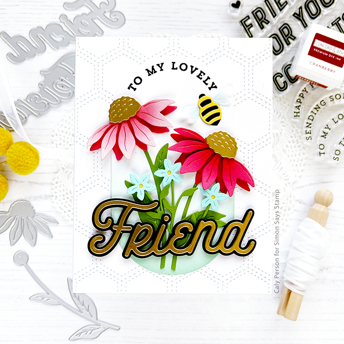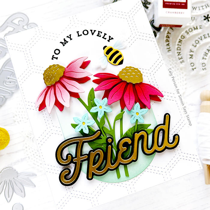 My second card uses the Friendly Florals set. Most sets are a main stamp set with coordinating dies, but I absolutely LOVE how C9 stamps often coordinate with the die as the main focus!