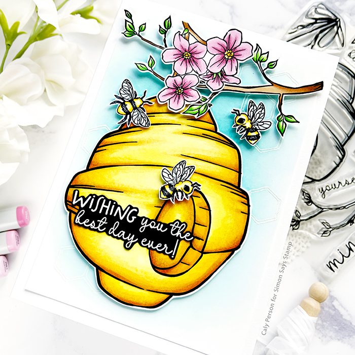 My card today is a 5″ x 7″ card to accompany the large images from these sets. On a white panel, I embossed honeycomb images, then ink-blended using Peacock Feathers Distress Oxide Ink for color before attaching my images. I also embossed a sentiment and fussy cut around the words to attach to my card as my final step. I hope you like it! Thanks so much for stopping by today!