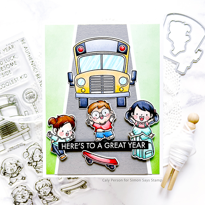 My final card creates a fun back to school scene. These kids are just having fun while waiting for the bus to arrive!