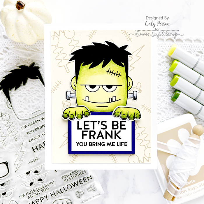 My Frank looks pretty ornery, doesn’t he? Kind of reminds me of my husband. Speaking of my husband…it’s our 19th anniversary! It’s hard to believe we’ve been married that long! He definitely brings me life ❤️. I stamped Franks head, his hands, and the bolts and colored them with Copic markers.
