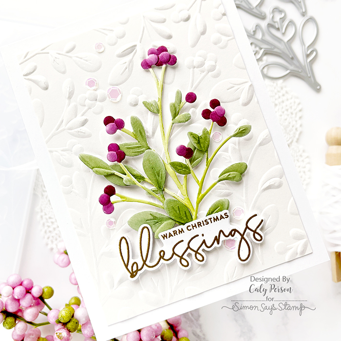 The embossing folder comes with coordinating dies. I die-cut the sprigs first, then placed them in the embossing folder over their coordinating images and embossed them.