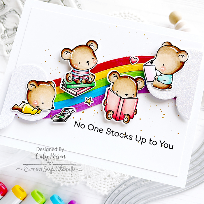 Today, I’m sharing a sweet card that reminds me of the show Reading Rainbow! It’s a show from my childhood and when I saw the Bookworm Bears set from My Favorite Things, I just knew I had to create with it!