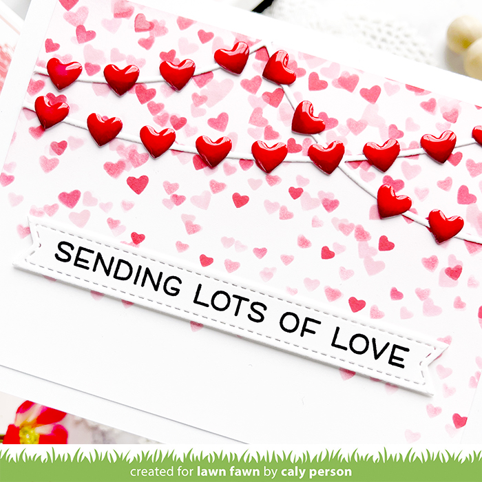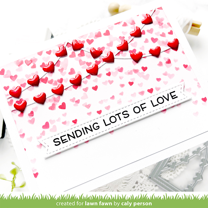 Today, the Lawn Fawn team is sharing inspiration using the new Falling Hearts Stencil. I have a simple card to share. Please keep in mind the products will not be available until December 15th at 12am ET. The release date is almost here!