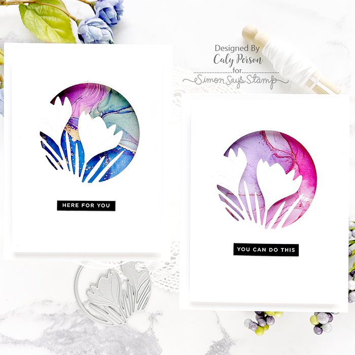 I have two clean and simple cards to share today using the Crocus Floral Window die from the Simons Says Stamp Hugs Release.