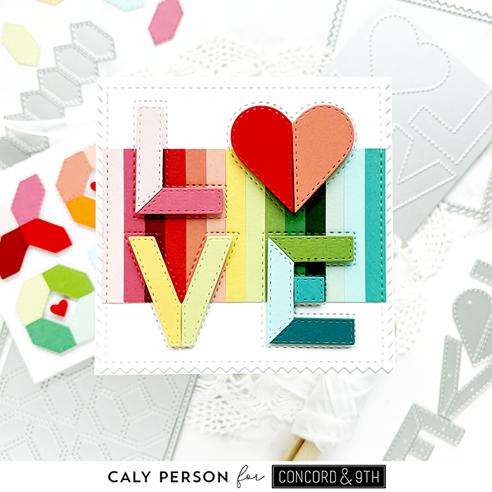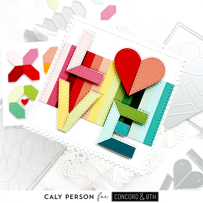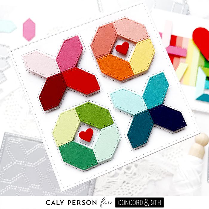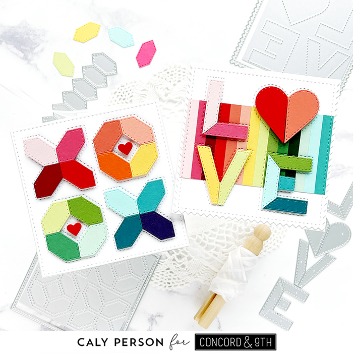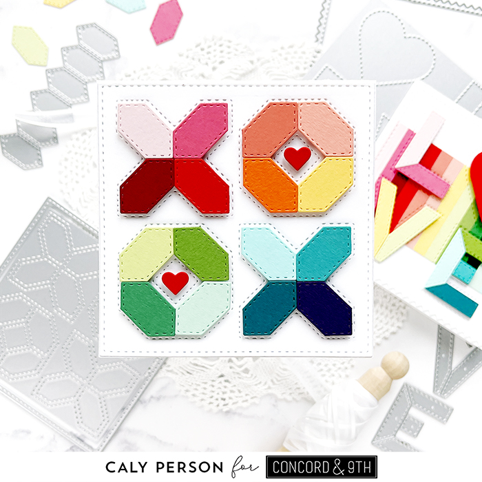 I’m excited to be guesting for Concord & 9th this month! For the next week, I’ll be sharing daily inspiration and I hope you enjoy the projects! Today’s cards feature the new Love Quilt Top Dies as well as the XO Quilt Top Dies. Create these fun designs in any color scheme you like! I made them colorful with an array of Concord & 9th cardstock colors.