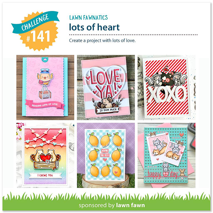 It’s Lawn Fawn Lots of Hearts Week! The Lawn Fawn and Lawn Fawnatics teams will be sharing Valentine’s/love-themed projects all week, hoping to inspire your projects before Valentine’s Day.