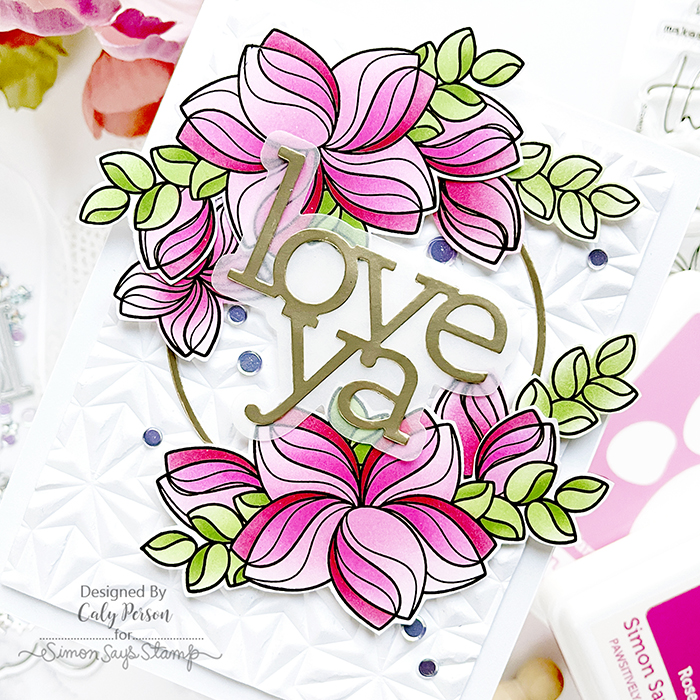 For a textured background, I used the Magnetic embossing folder. After arranging my images to create a wreath, I die-cut a sentiment using the new Love Ya Die using Matte Champagne Cardstock and vellum. To finish, I embellished my card with the new Disco Heart Sequin mix (using only the flat confetti from the mix).