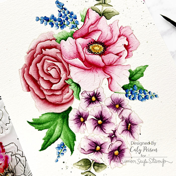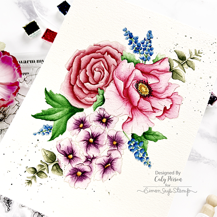 Today’s post isn’t a card, but it features a beautiful set from Simon Says Stamp called Beautiful Bouquet! This set is a 6″ x 8″ set and the image is large. I didn’t have the heart to cut up the image, so I stamped it over a 6 1/4″ x 8 1/4″ piece of watercolor paper to watercolor it fully.