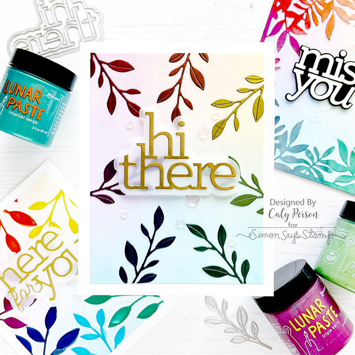 I’m here to share three cards made using Lunar Pastes from Simon Hurley!  These colorful pastes have intrigued me for a while.  I’ve had to work up the courage to use them because I have an aversion to mess.  Anyone else?  I found ways to use them that are fun and colorful that still fit my style and I’m excited to share them with you!