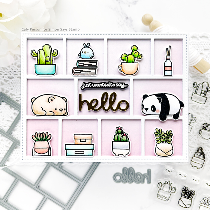 I stamped and colored images from the Little Succulent Agenda and It’s Okay sets with Copic markers. Super simple coloring when the images are small – the blending is takes less effort. But I love these lazy critters and zen succulent images!