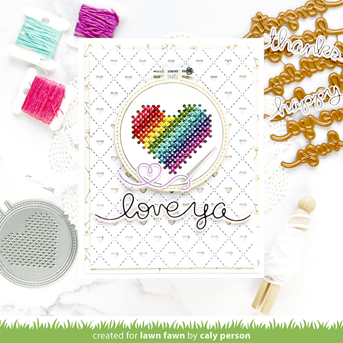The Lawn Fawn Spring release went live yesterday and we are ending Inspiration Week with a bonus day – featuring the Embroidery Hoop die. There is a Embroidery Hoop: Rainbow Add-On Die also, but my card only uses one of the embroidery hoops from the main set – options!