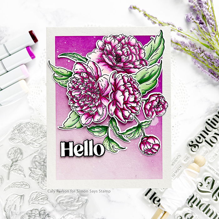 For the background, I ink-blended Distress Oxide Inks over a piece of Fog cardstock. It frames the peonies and coordinates with them in color.