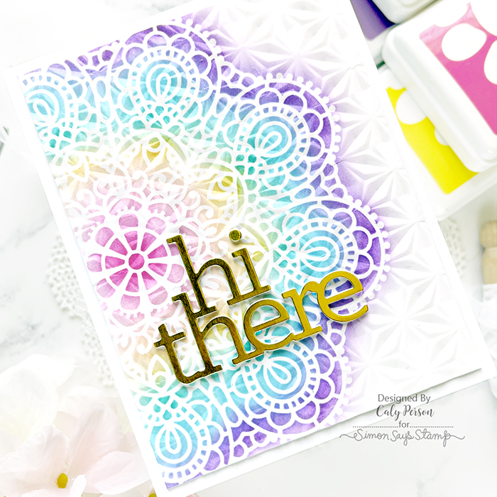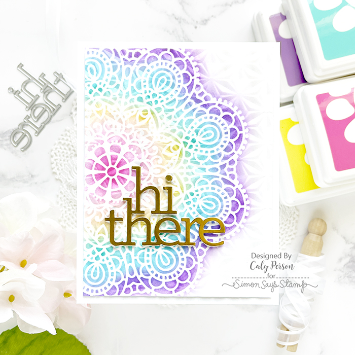 I used a Stamp and Stencil Mat to hold down my cardstock and stencil to ink-blend the Circular Lace Stencil in a rainbow pattern from the center.