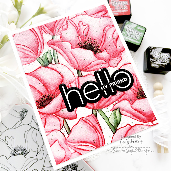 I went through my cling stamps bin and pulled out a few of my favorites to try some new things I’ve never tried before. Today’s card uses Distress Ink to watercolor. The Poppies Background cling stamp is one of my favorites!