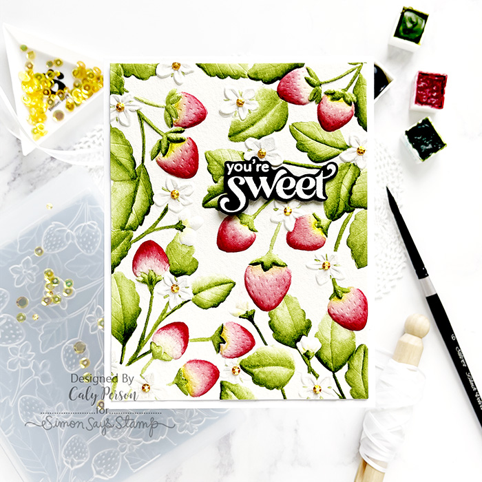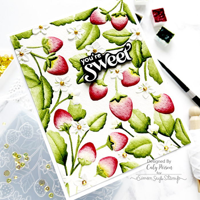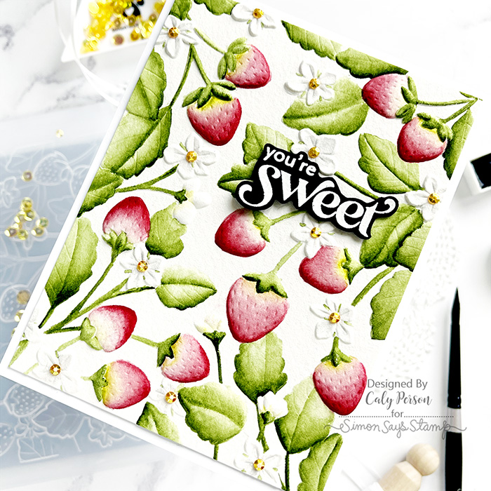 I’m back to share more inspiration from the Out of This World release from Simon Says Stamp. Today’s card features one of several new embossing folders from this release. The Strawberry Fields Embossing Folder called to me.