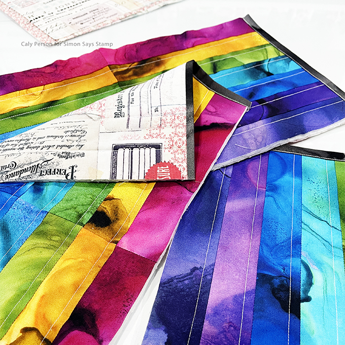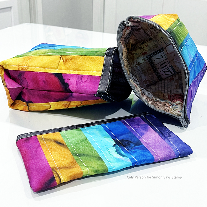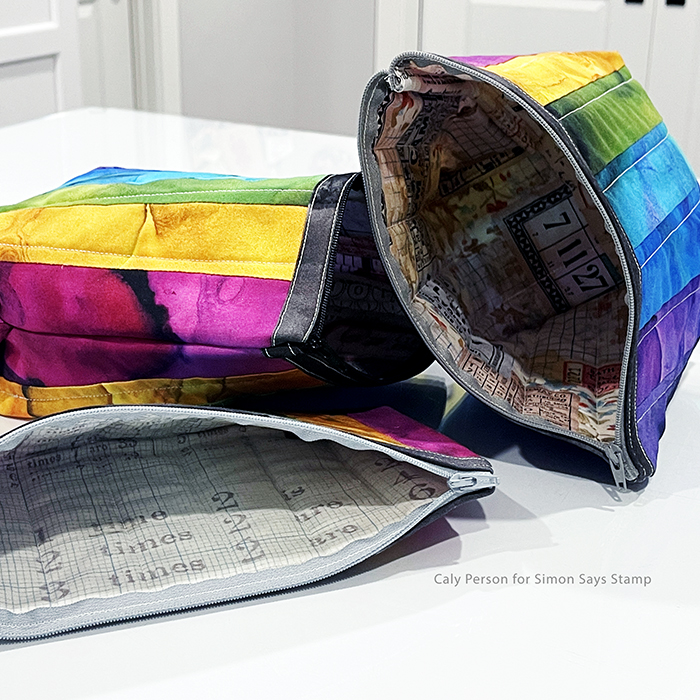 The Eclectic Elements Alchemy Fabric Bundle reminds me of Distress alcohol ink and the Eclectic Elements Memoranda Fabric Bundle reminds me of Tim’s stencils and mixed media tags. I used one bundle for the outside of the zipper pouches and one bundle for the lining of the zipper pouches. These fabric bundles are pre-cut to 10″ x 10″ pieces and are pre-washed and ready to use!