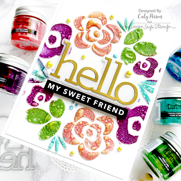 Tim Holtz just released an expanded color line of Distress Embossing Glazes for Ranger! These glazes work like embossing powders, but are translucent, provide fun textures, and can be used with other mediums! My card today uses texture paste with a stencil.