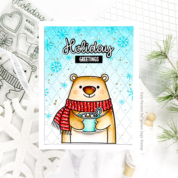 Oh what pretty cards. I love the colors and the lacy details on the mitten. The bear is so welcoming with his cup of hot cocoa just waiting for us.