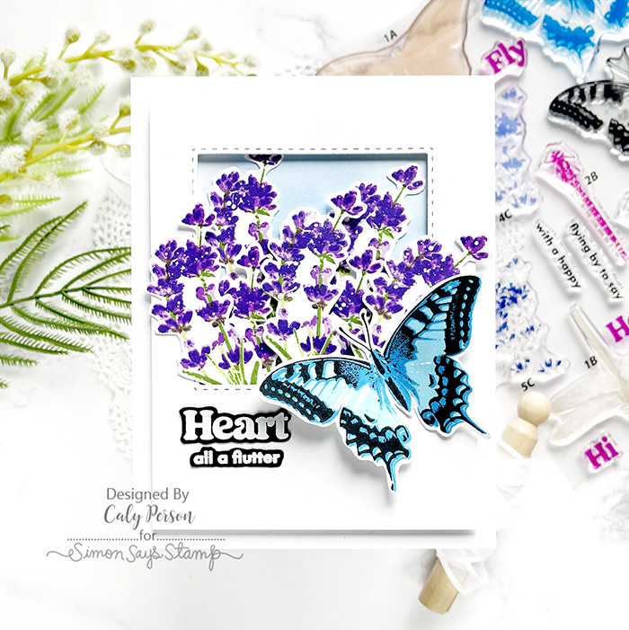 I die-cut a square window and added lavender stems to come out of it and finished with the butterfly on the top.