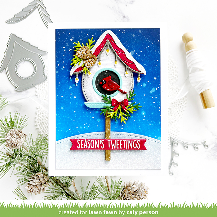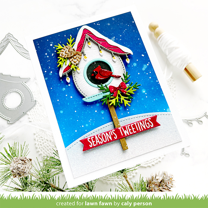 Today’s the last day of this month’s Inspiration Week! I hope you’ve enjoyed the projects this past week! My card today features the Build-A-Birdhouse and the Build-A-Birdhouse Christmas Add-On dies.