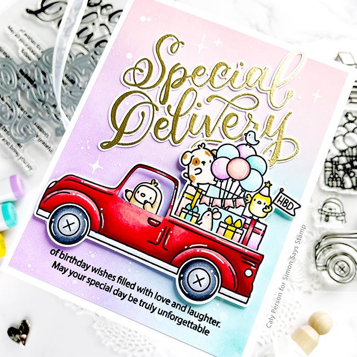 I stamped and colored the Deliver by Truck images with Copic markers. Both sentiments on my card are from the Special Delivery set.
