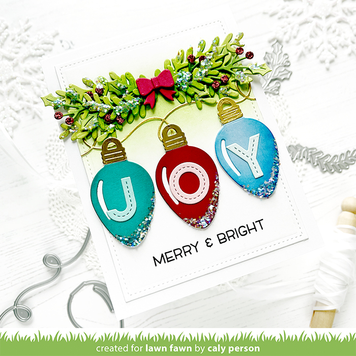 I used some alphabet dies for the word “joy” over the light bulbs and finished with a simple sentiment from the Merry Mice set. A full list of supplies is listed below!